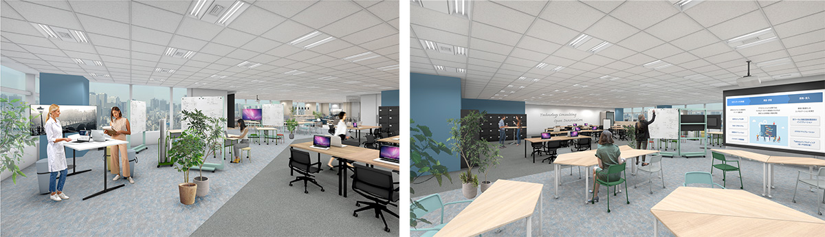 これまで個人で集中して働く在宅ワークと、リアルに感じるコミュニケーションでチームの力や仲間意識を高め、共にアウトプットする喜びや会社への誇りを醸成するオフィスでの仕事を組み合わせたハイブリッドワークを採用し、働く場所を選択する自由度と社員一人一人が成果にフォーカスできる環境を提供して参りました。今回の移転では新本社を社員間のリアルコミュニケーションとコラボレーションのハブとして位置付け、これまで以上に「ここで働くことが楽しい、面白い」と感じてもらえる空間を整備します。